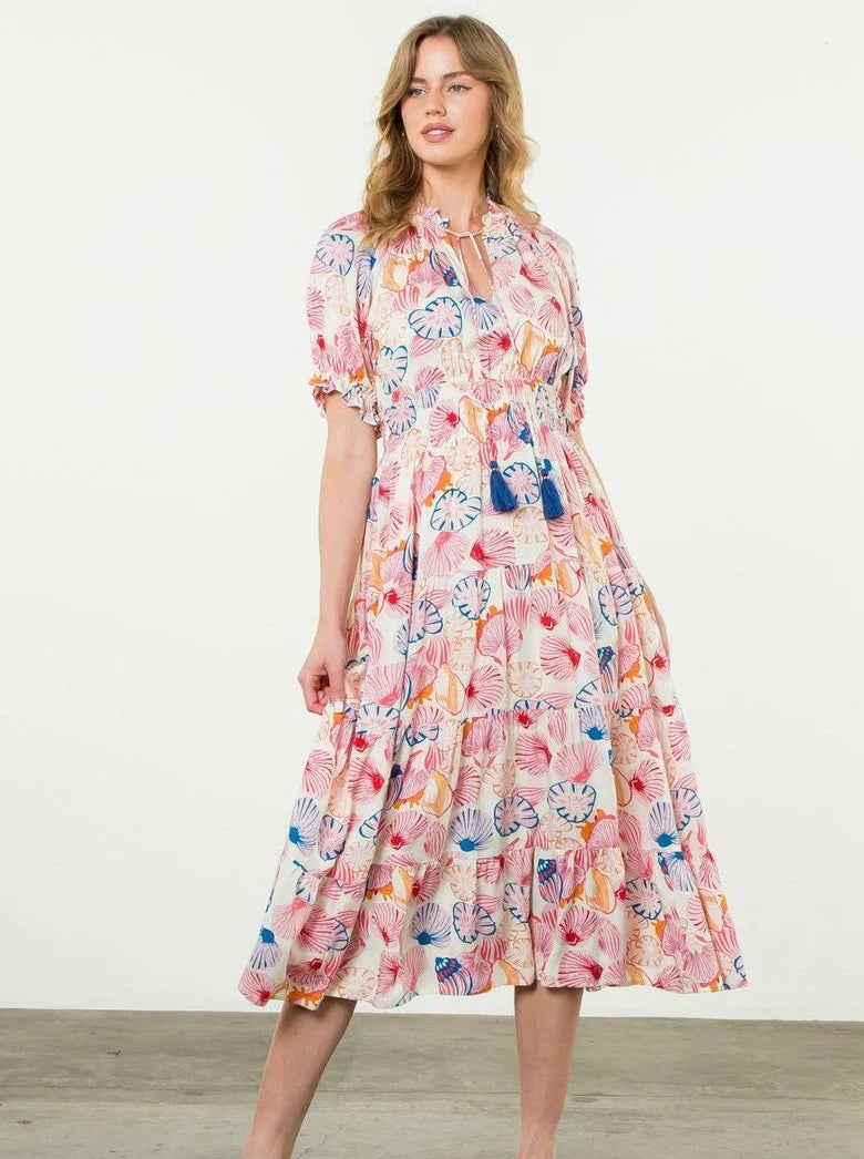 THML Smocked Waist Summer Print Tiered Dress